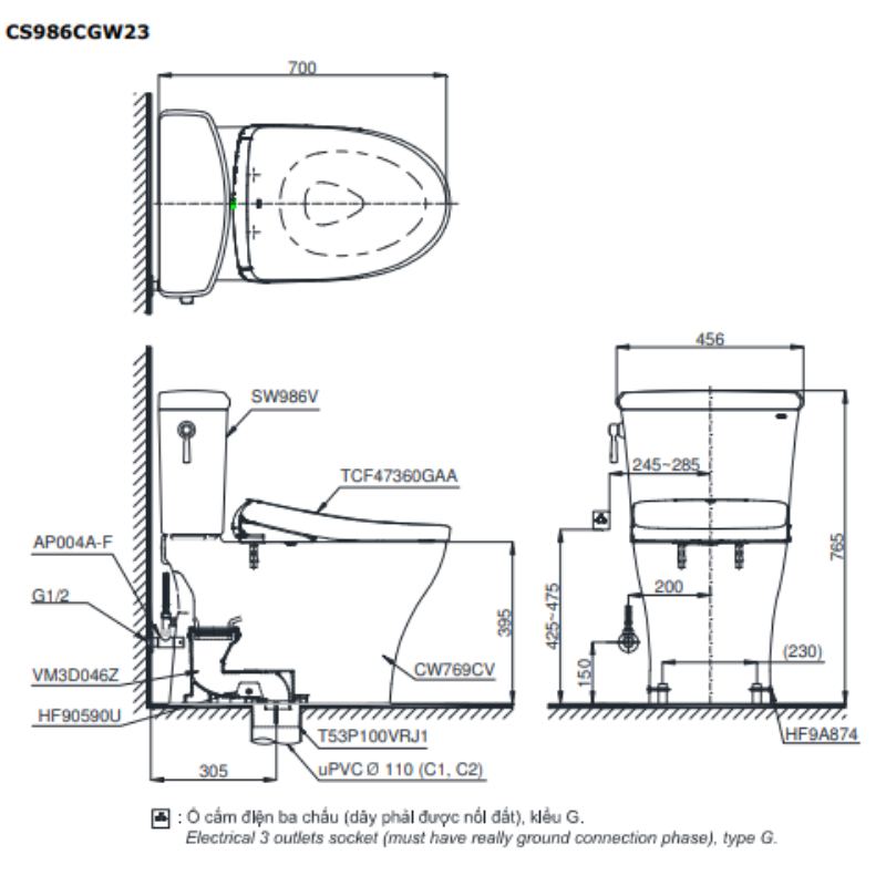Bồn Cầu Điện Tử TOTO CS986CGW23 Nắp Rửa Washlet TCF47360GAA S7