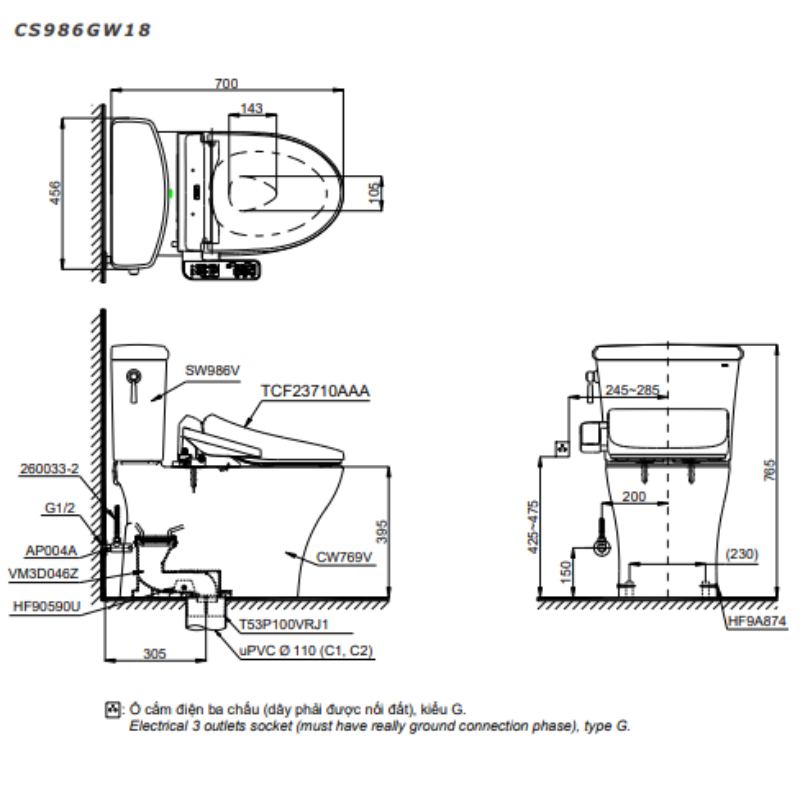 Bồn Cầu Điện Tử TOTO CS986GW18 Nắp Rửa Washlet TCF23710AAA