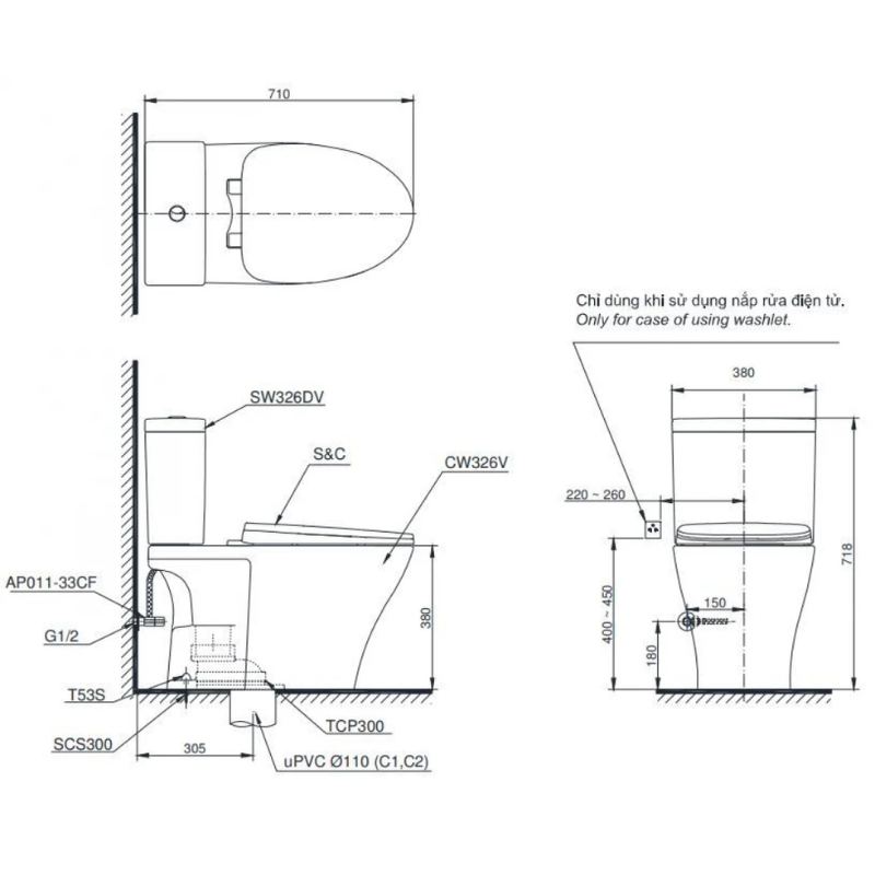 Bồn Cầu Thông Minh TOTO CS326DW16 Nắp Rửa Washlet