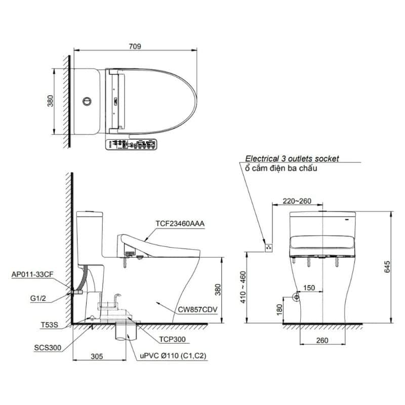 Bồn Cầu Thông Minh TOTO MS857CDW17 Nắp Rửa Washlet TCF23460AAA C2