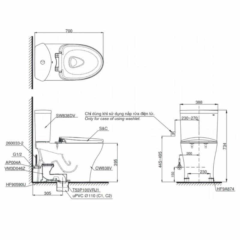- Tên sản phẩm: Bồn cầu TOTO 2 khối nắp TC393VS