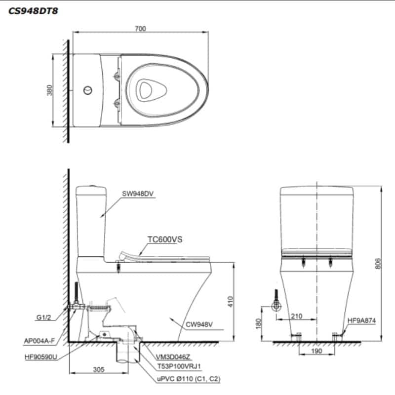 - Tên sản phẩm: Bồn cầu hai khối TOTO