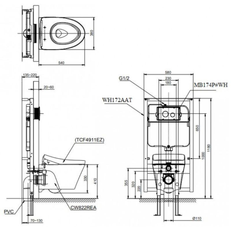 Bồn Cầu TOTO Treo Tường CW822REA/TCF4911EZ/WH172AAT/MB176GH