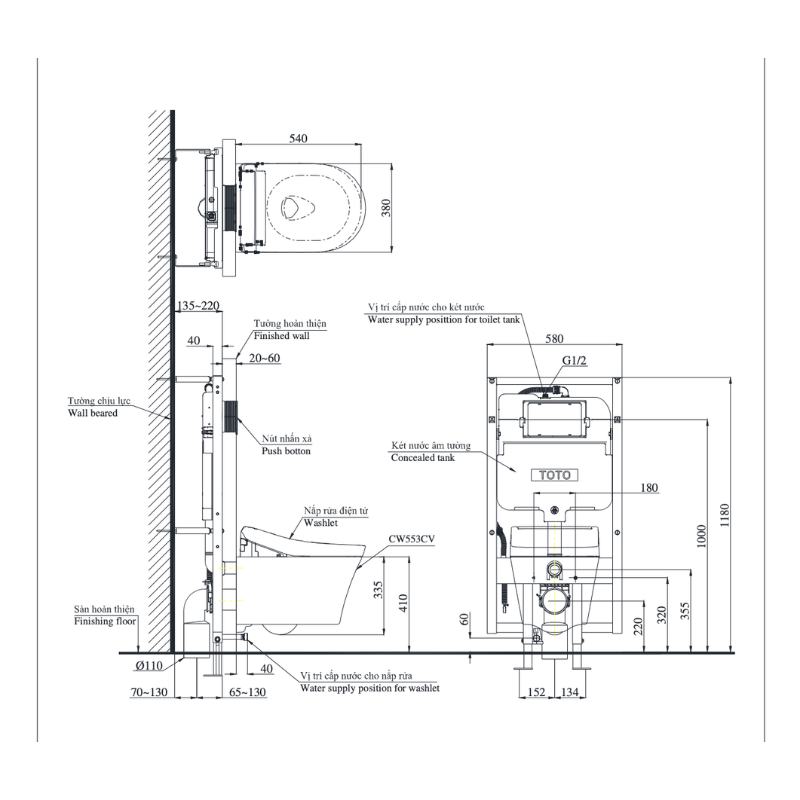 - Nắp rửa điện tử WASHLET giấu dây: TCF34570GAA
