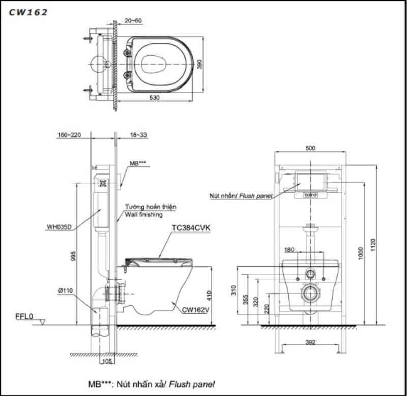 • Có thể lắp đặt kết hợp nắp đóng êm TC384CVK, nắp rửa cơ hoặc nắp điện tử