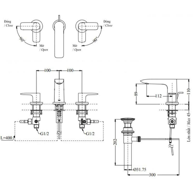 - Áp lực nước: 0.05MPa ~ 0.75MPa