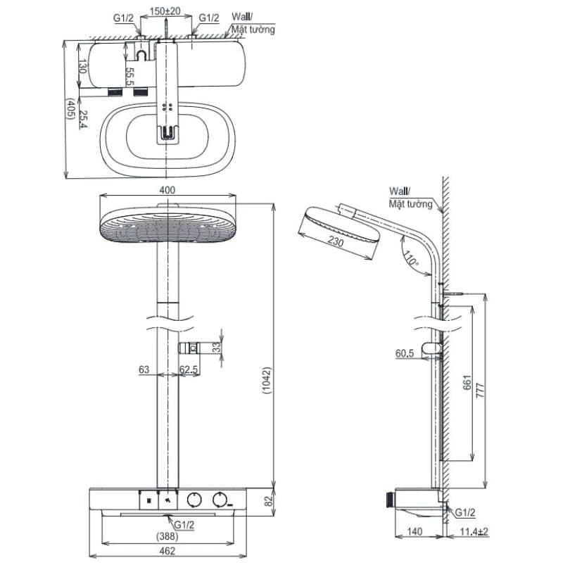 - Khoảng cách đường cấp nóng lạnh: 150mm +-20